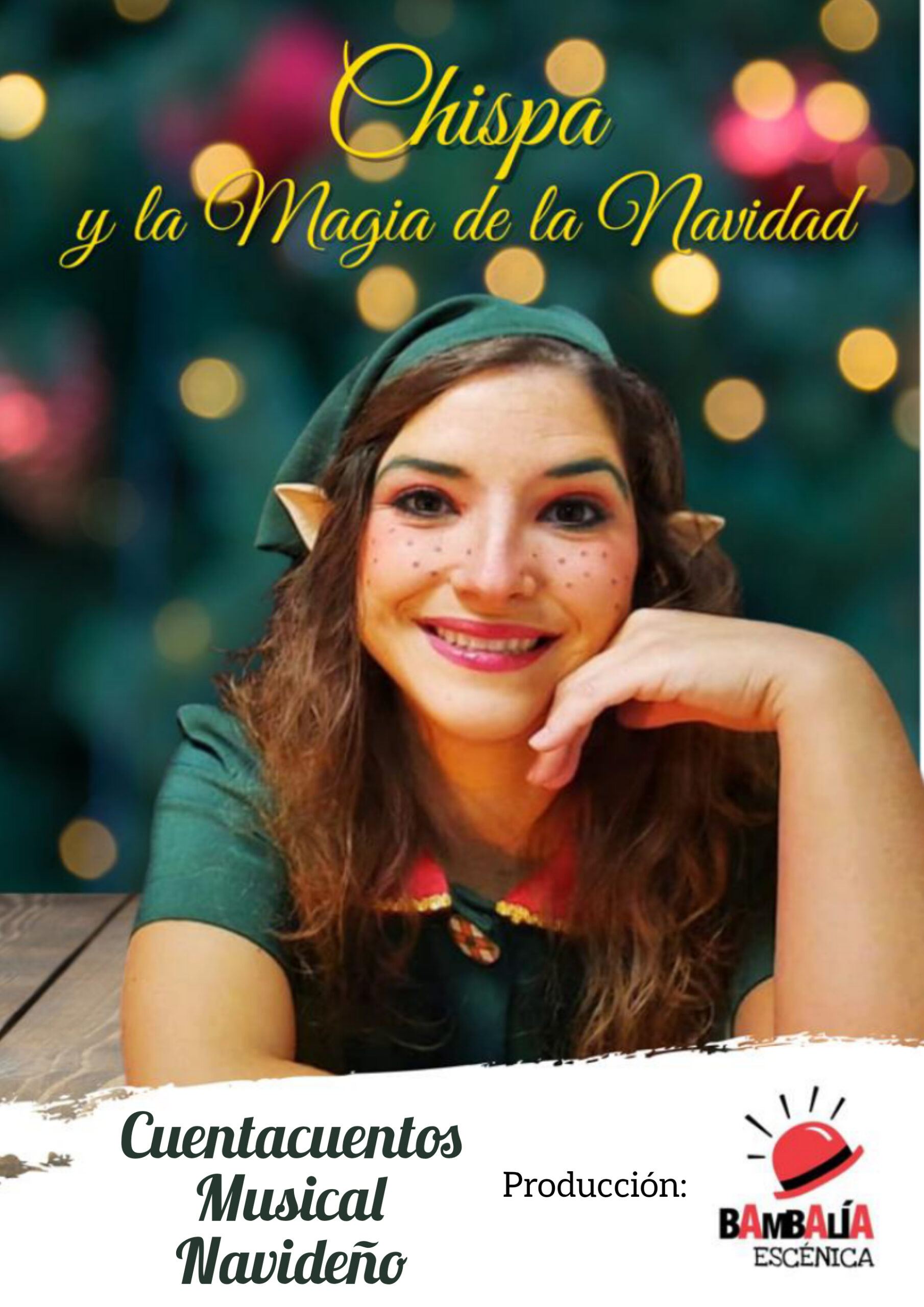 Espectáculo musical de cuentacuentos navideño. La elfa Chispita llega a la ciudad de un largo viaje desde el polo norte para contar y cantar las mejores historias y canciones navideñas a todos los niños y niñas. Junto a un árbol de navidad lleno de regalos, un trineo y un muñeco de nieve, descubrirán con los niños y niñas las historias más fantásticas llenas de valores y aprendizajes. Santa Claus, Rudolf el reno, el zapatero honrado y hasta turrones y mazapán acompañaran a nuestra elfa. Momentos divertidos y musicales que te sorprenderán donde no faltará música, villancicos y baile. Voz en directo. Espectáculo lleno de sorpresas donde los personajes animados más famosos aparecen junto a Chispa para bailar y emocionar a todo el público, niños y mayores.