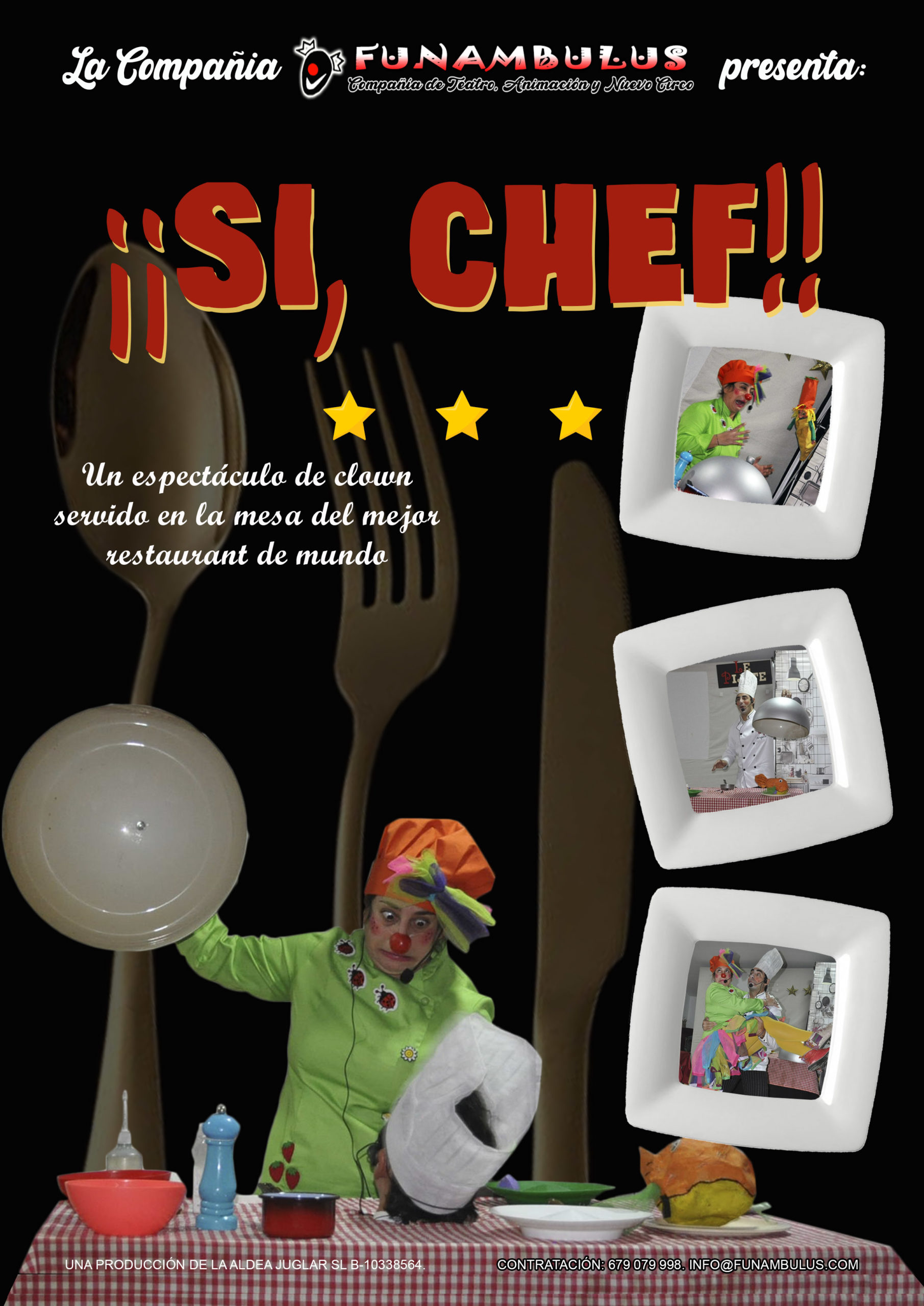 Obra de Teatro en clave de clown para público infantil – familiar que a lo largo de 50 minutos parodia el mundo de la alta cocina y la gran moda que alrededor de esta se ha creado con un humor sencillo y directo.