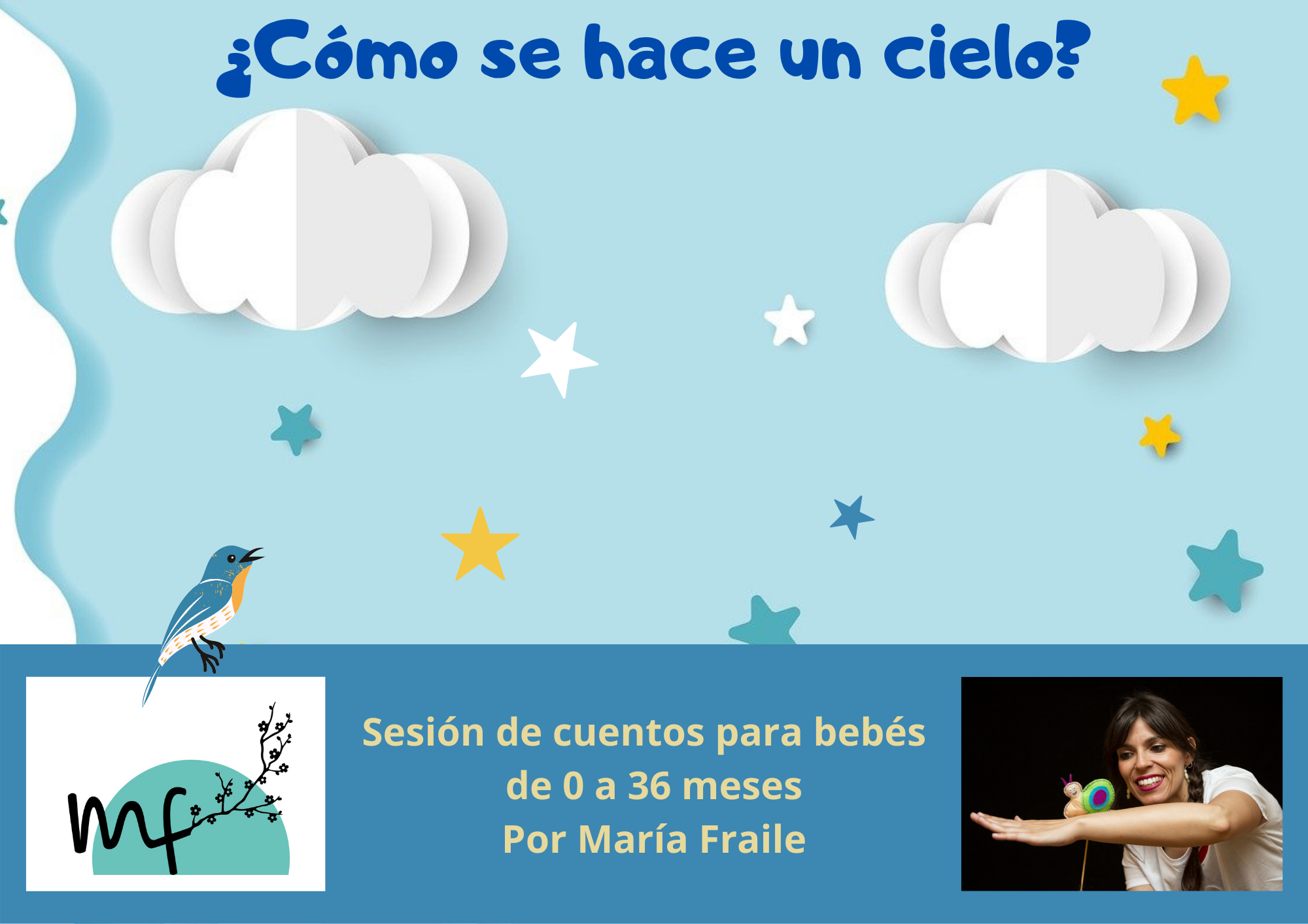 Un tiempo para los cuentos, los cantos, la poesía, las retahílas y para estimular los sentidos de nuestros/as bebés a través de pequeñas historias relacionadas con el cielo que nos acoge. Un tiempo para estar presentes disfrutando de nuestros/as bebés en el regazo.