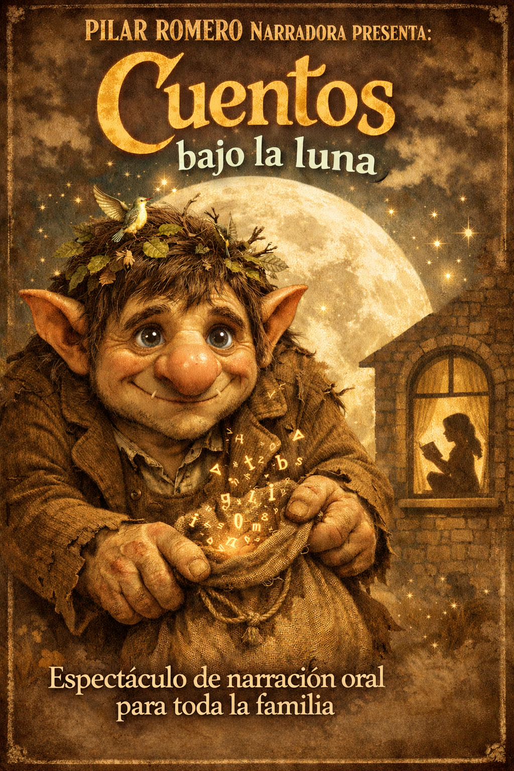 Cuentos bajo la luna es un espectáculo de narración oral familiar que reúne a niñas, niños y personas adultas en torno a la palabra contada, la imaginación y la escucha compartida.