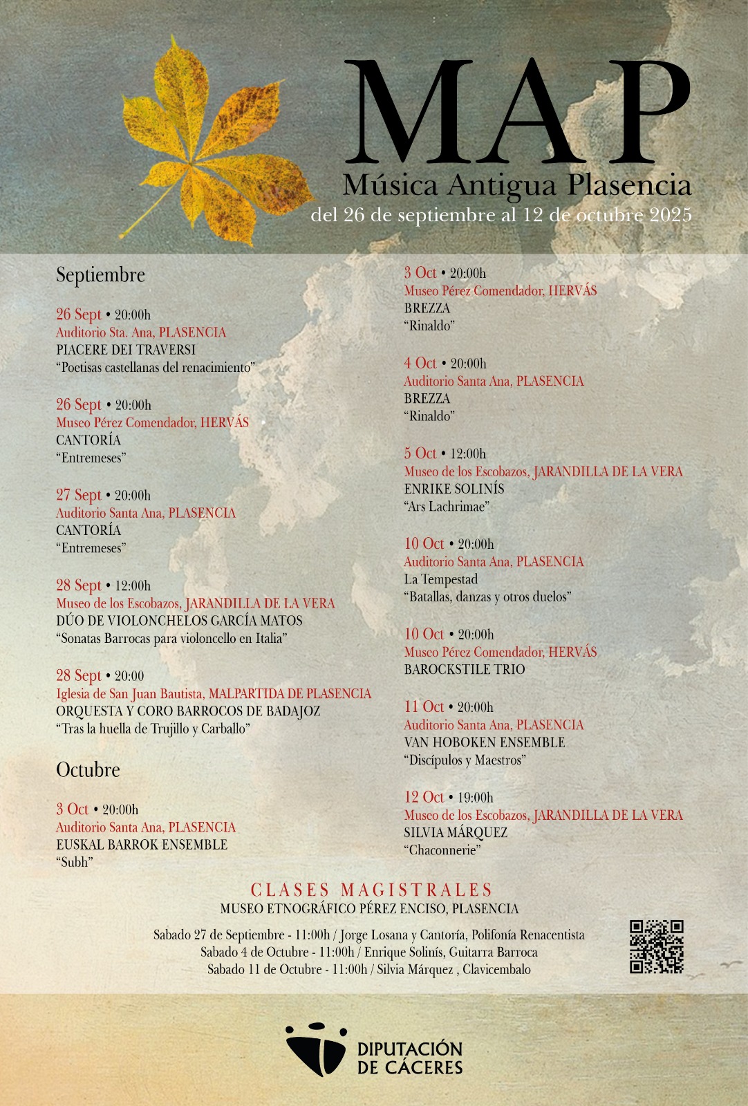 Del 26 de septiembre al 12 de octubre La Diputación de Cáceres, después del éxito obtenido en la edición anterior, organiza el MAP (Música Antigua de Plasencia) extendiendo sus actuaciones a Hervás, Malpartida de Plasencia y Jarandilla de la Vera. Llegar al máximo de pueblos y ciudadanos es la vocación […]