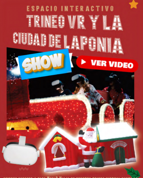 REALIDAD VIRTUAL CON RECOGIDA DE CARTAS Contamos con una casita de medidas 9x4x5 de altura y con un trineo de realidad Virtualque te hará pasar un magnífico Viaje, con una duración de 3 a 6 minutos de película, y conuna vista en 360 º