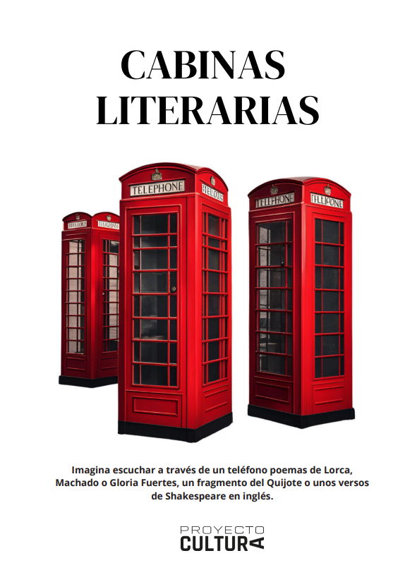 CABINAS LITERARIAS Imagina escuchar a través de un teléfono poemas de Lorca, Gloria Fuertes, Antonio Machado o Emily Dickinson. Un fragmento del Quijote, una entrada del diccionario de María Moliner o unos versos de Shakespeare en inglés.Una experiencia sensorial que te conecta con la literatura y la poesía de manera […]