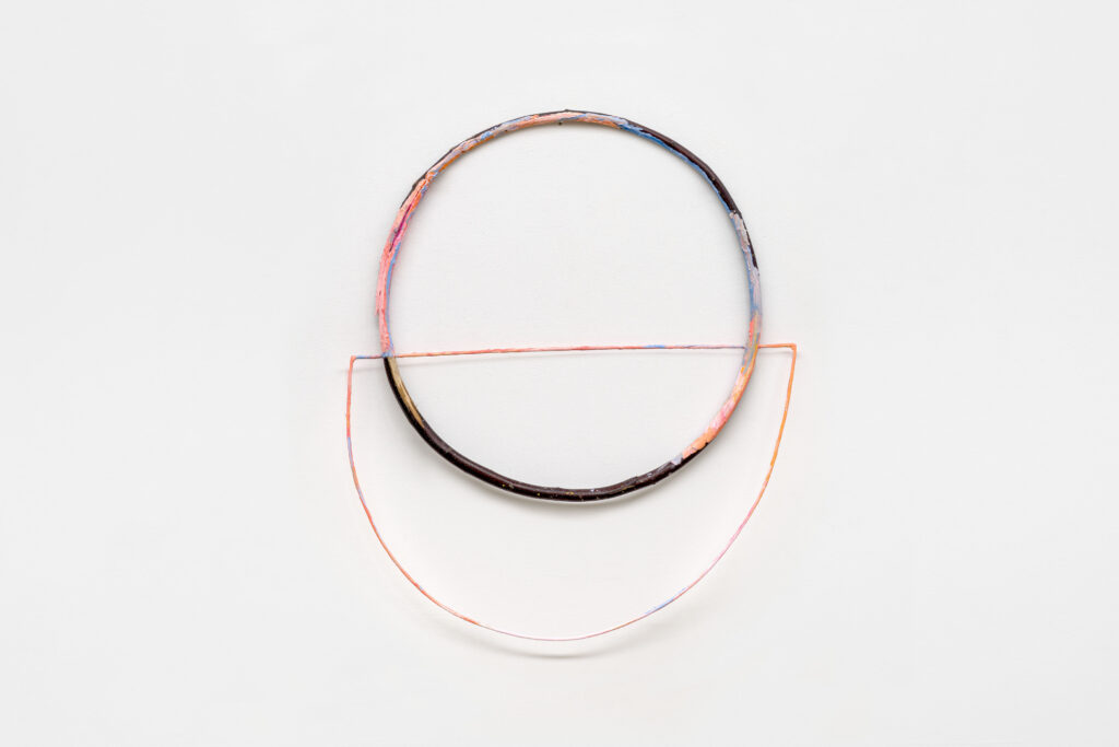 Ana Hernández del Amo por Sin Título. Madera, hierro y óleo. Obra escultórica que surge de la colaboración de la artista con artesanos extremeños: un cestero, un ebanista y un herrero.
