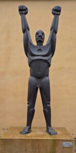 La escultura, de aproximadamente tres metros de altura, muestra la figura con los brazos extendidos hacia el cielo y los puños cerrados. Se trata de una réplica a menor escala del monumento inaugurado en 1994 en Sangolquí, localidad cercana a Quito, concebido como homenaje a la resistencia.