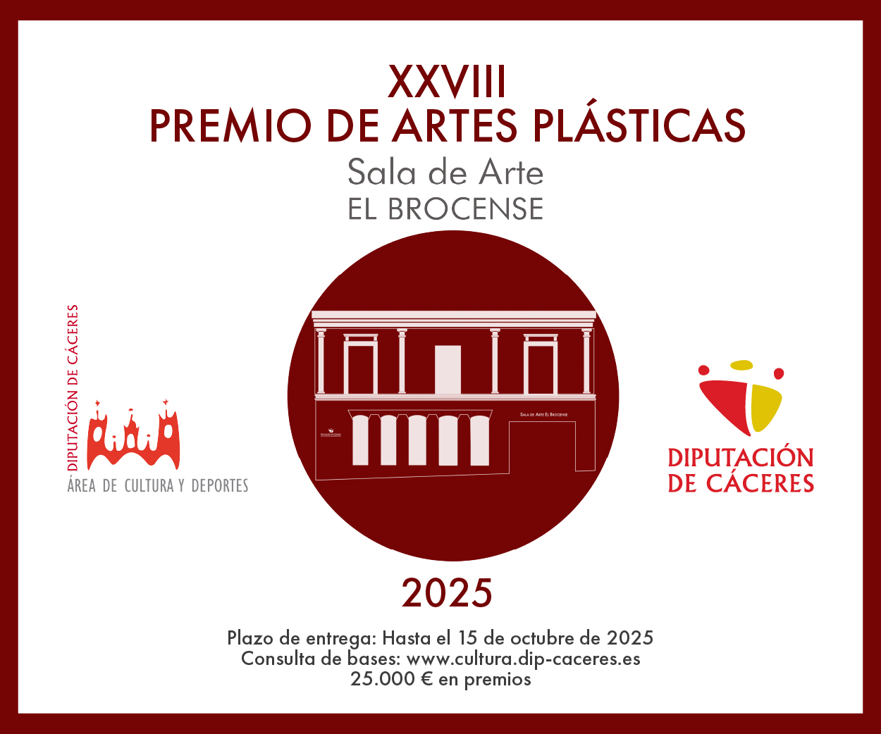 La Diputación Provincial de Cáceres, a través del Área de Cultura, convoca la vigésimo octava edición del Premio de Artes Plásticas Sala El Brocense, con el objetivo de promover e incentivar la creación plástica contemporánea. Con este premio, la Diputación no solo apoya el trabajo de artistas nacionales e internacionales, […]
